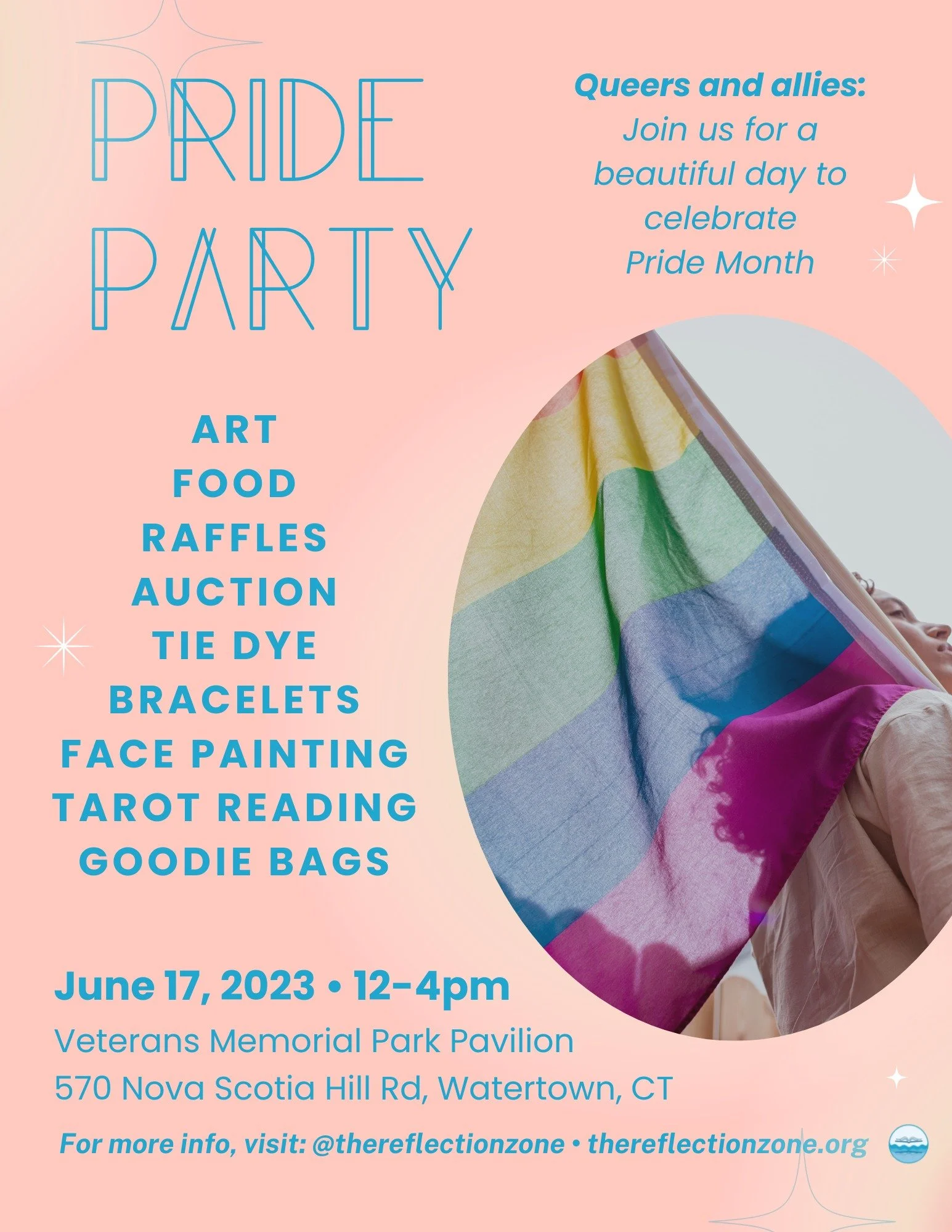 Reflection zone: PRide Party Saturday, June 17, 2023 12:00 PM 4:00 PM Veterans Memorial Park Pavillion 570 Nova Scotia Hill Road Watertown, CT, 06795 United States (map) Google Calendar ICS