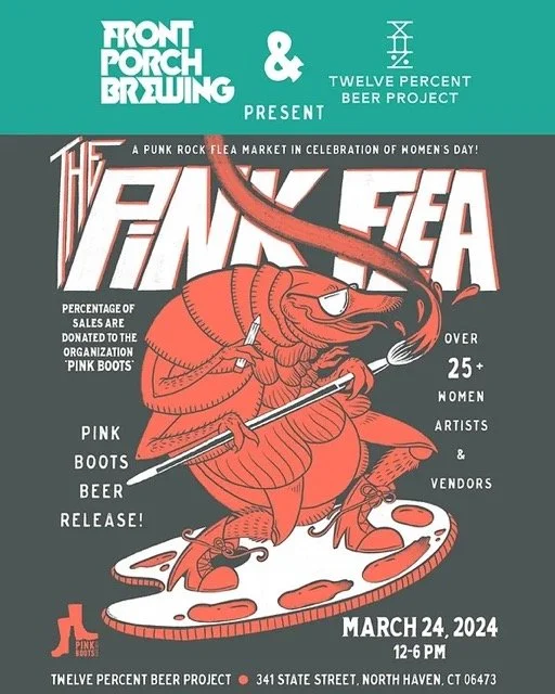 Back to All Events PINK FLEA Sunday, March 24, 2024 12:00 PM 6:00 PM Twelve Percent Beer Project 341 State Street North Haven, CT, 06473 United States (map) Google Calendar ICS